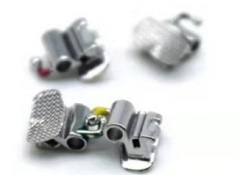 2、粘接型頰面管:近中向弓絲入槽口為導(dǎo)入槽設(shè)計,便于弓絲入槽;牽引鉤末端光滑,減少對軟組織的刺激;網(wǎng)底凹形弧度設(shè)計,與牙面更貼合。